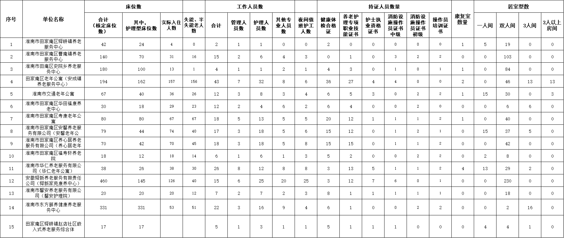 田家庵区养老服务机构可服务老年人类型和床位数统计表