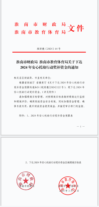 淮南市财政局淮南市教育体育局关于下达2024年安心托幼行动奖补资金的通知