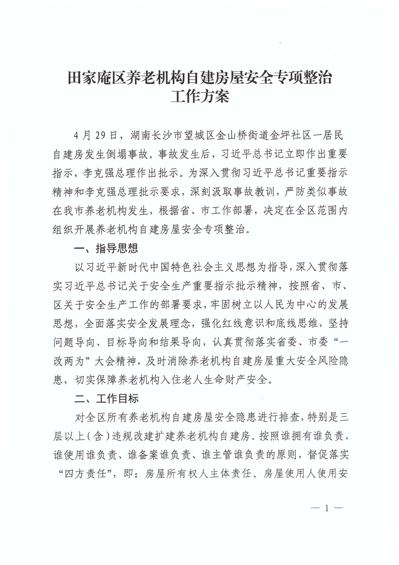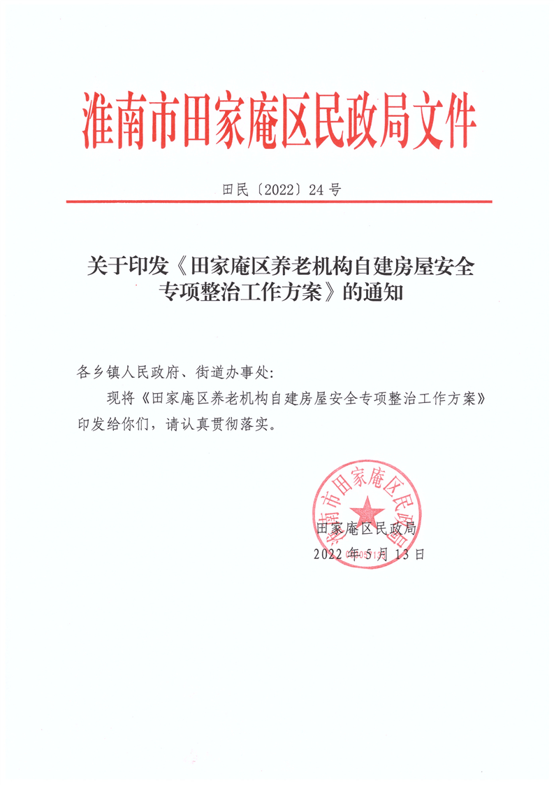 田区民政局关于印发《田家庵区养老机构自建房屋安全专项整治工作方案》的通知