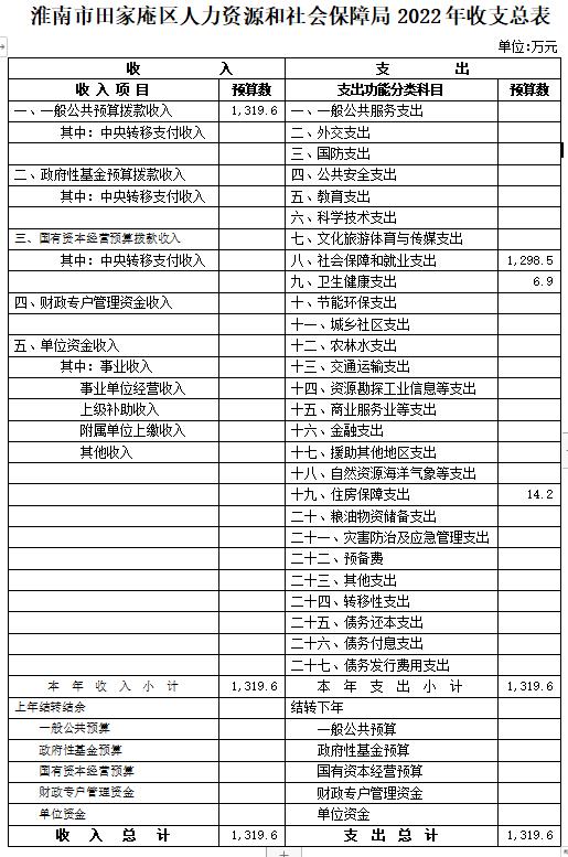1.淮南市田家庵区人力资源和社会保障局2022年收支总表