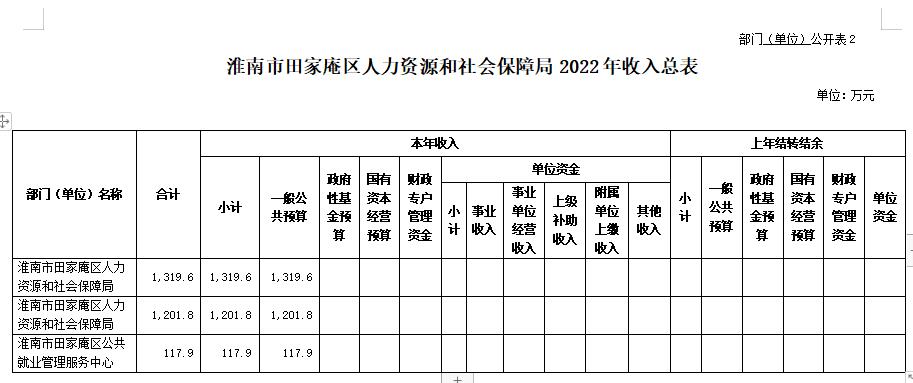 2.淮南市田家庵区人力资源和社会保障局2022年收入总表