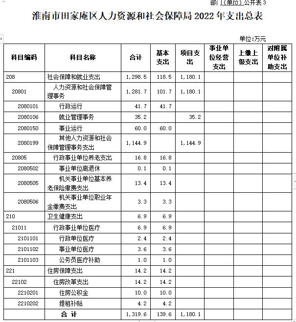 3.淮南市田家庵区人力资源和社会保障局2022年支出总表
