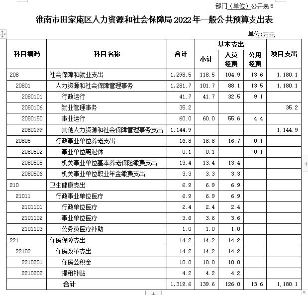 5.淮南市田家庵区人力资源和社会保障局2022年一般公共预算支出表