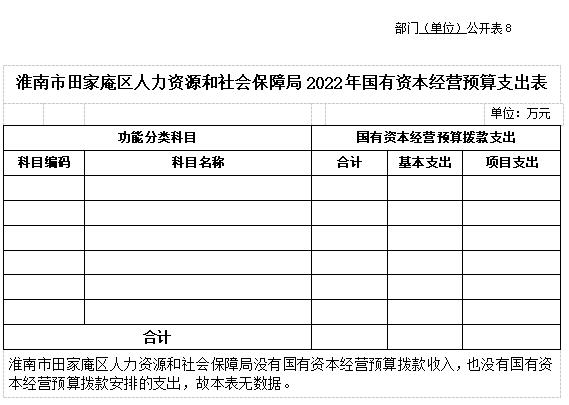 8.淮南市田家庵区人力资源和社会保障局2022年国有资本经营预算支出表