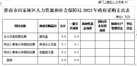 10.淮南市田家庵区人力资源和社会保障局2022年政府采购支出表
