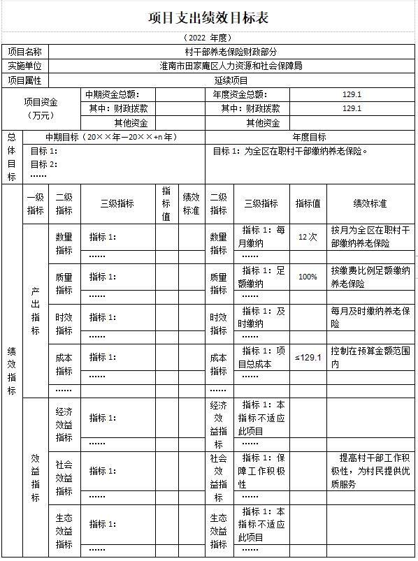 2022年,淮南市田家庵区人力资源和社会保障局2个项目实行了绩效目标管理,涉及一般公共预算当年财政拨款1084.9万元。