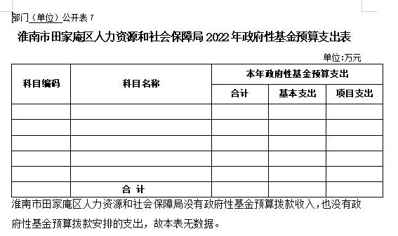 7.淮南市田家庵区人力资源和社会保障局2022年政府性基金预算支出表