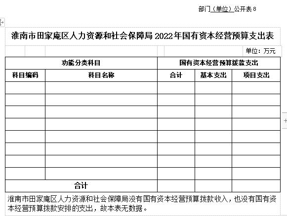 8.淮南市田家庵区人力资源和社会保障局2022年国有资本经营预算支出表