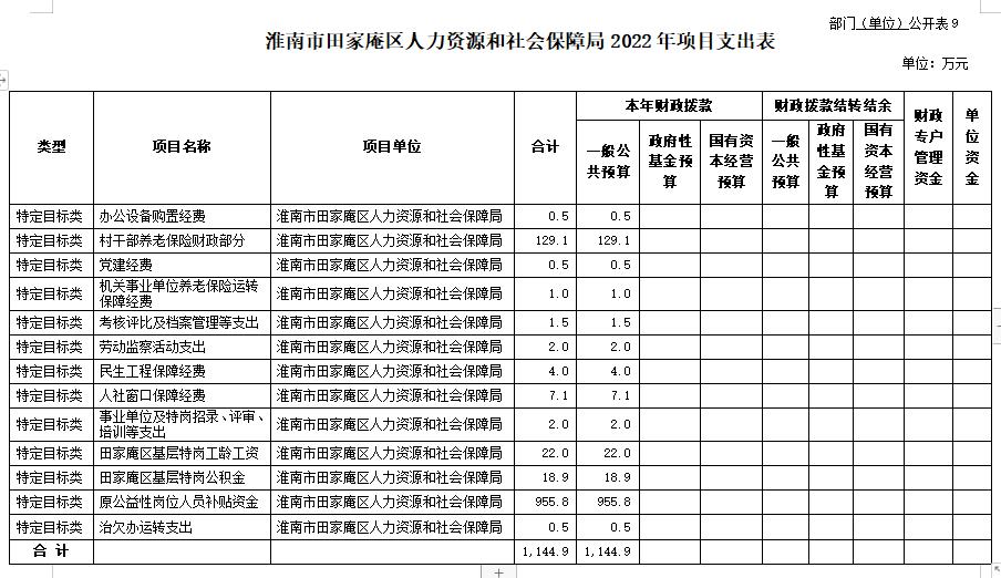 9.淮南市田家庵区人力资源和社会保障局2022年项目支出表