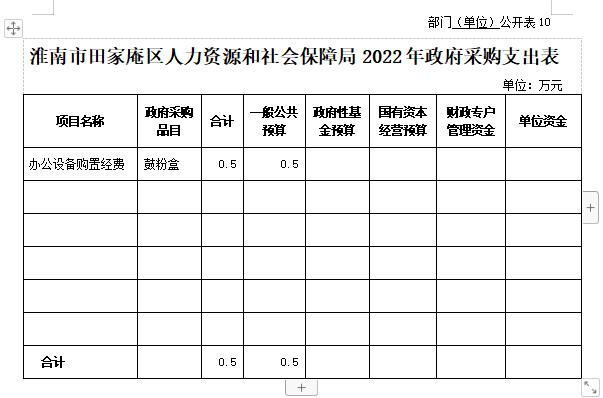 10.淮南市田家庵区人力资源和社会保障局2022年政府采购支出表