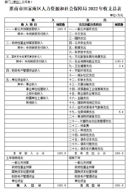1.淮南市田家庵区人力资源和社会保障局2022年收支总表