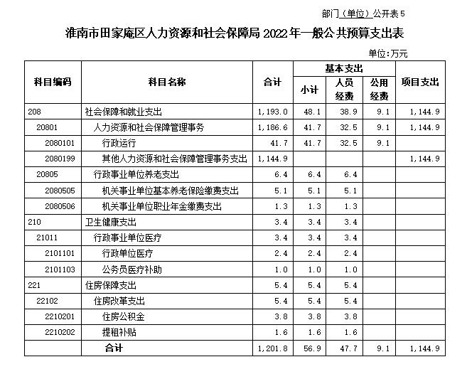 5.淮南市田家庵区人力资源和社会保障局2022年一般公共预算支出表