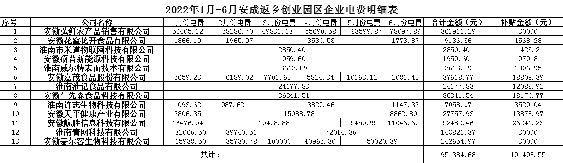 关于拨付安成农民工返乡创业园2022年水电补贴费用的公示