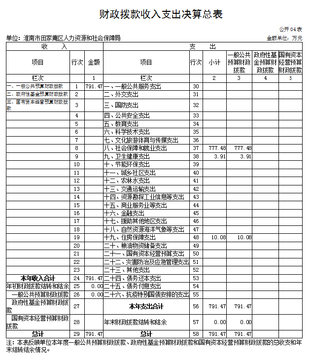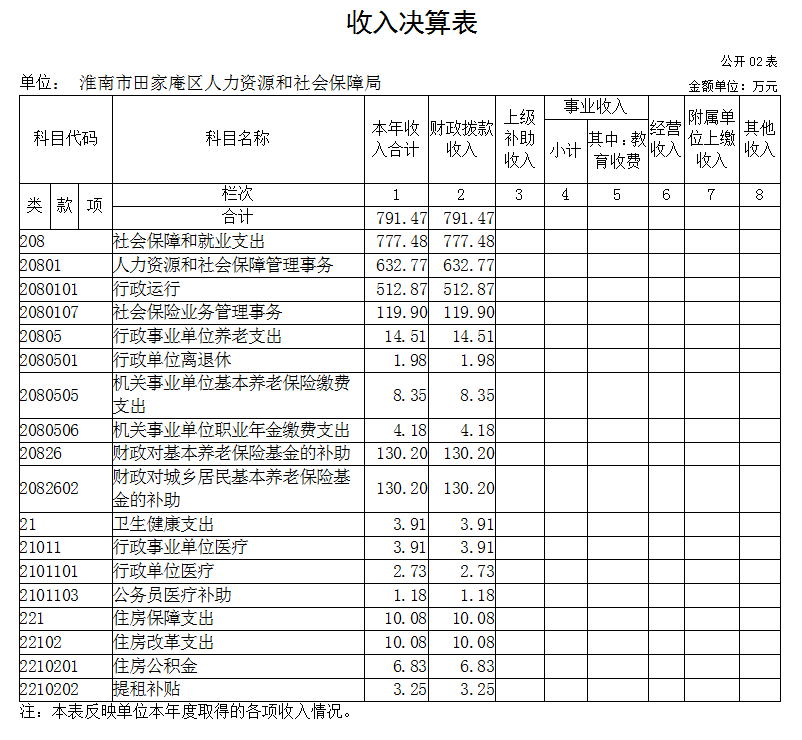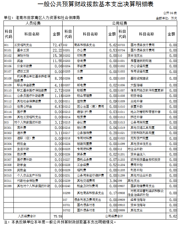 第二部分 淮南市田家庵区人力资源和社会保障局2023年度单位决算表