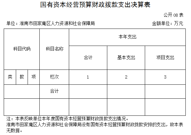 淮南市田家庵区人力资源和社会保障局没有使用国有资本经营预算财政拨款安排的支出。