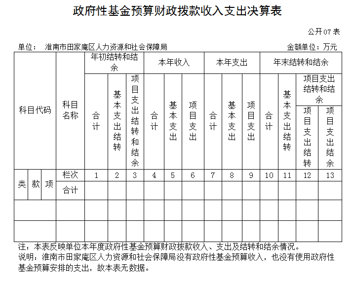 淮南市田家庵区人力资源和社会保障局没有政府性基金预算收入,也没有使用政府性基金预算安排的支出。