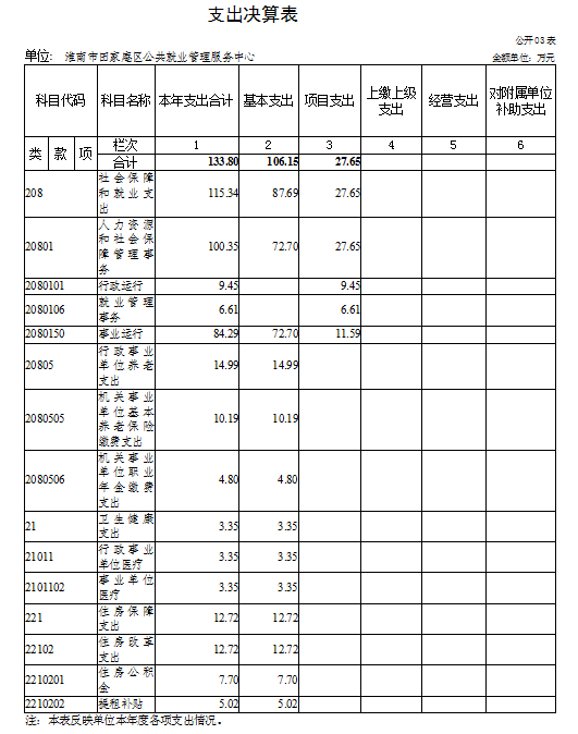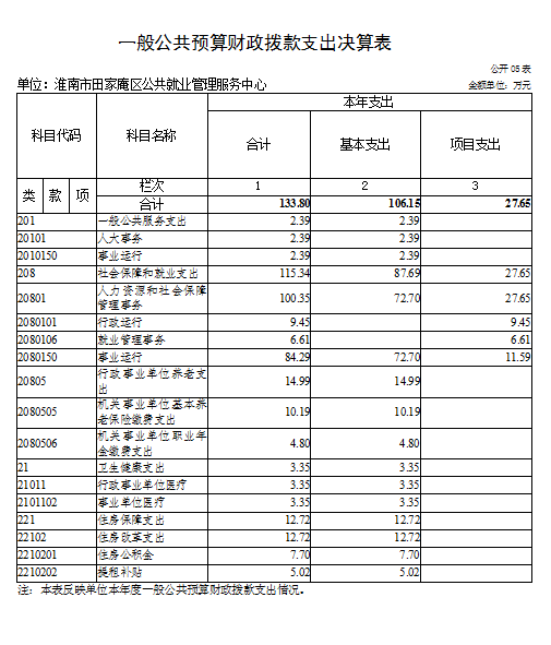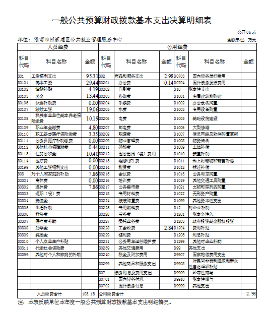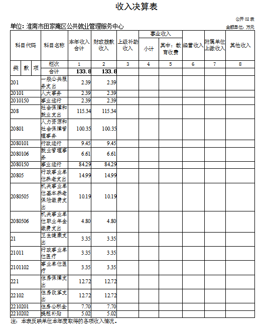 第二部分 淮南市田家庵区公共就业管理服务中心2023年度单位决算表