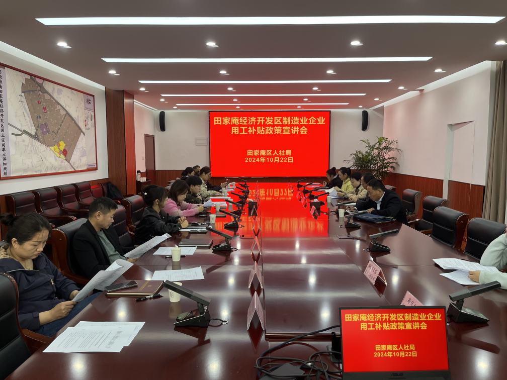 为大力引导和支持辖区内制造业企业做大做强,同时做好“制造业企业用工保障补贴”申报工作,10月22日上午,区人社局联合曹庵园区管委会在曹庵园区会议室开展了“关于加强制造业企业用工保障”的政策宣讲会,为园区18家企业进行了现场政策辅导。