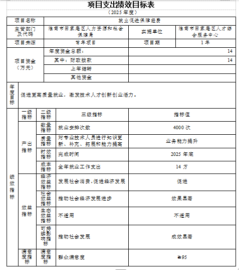 淮南市田家庵区人才综合服务中心2025年政府购买服务支出表 单位:万元 |
