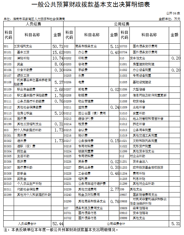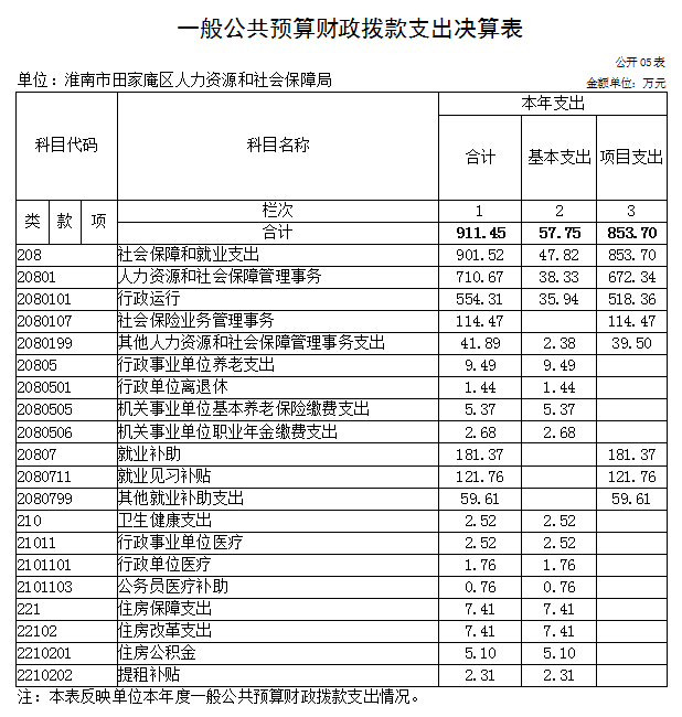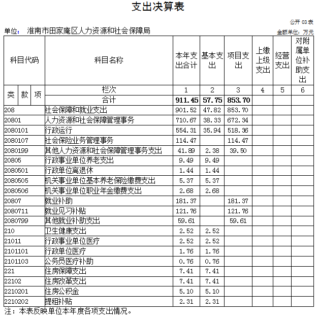 淮南市田家庵区人力资源和社会保障局2024年决算公开表.xlsx