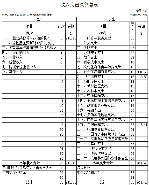 第二部分 淮南市田家庵区人力资源和社会保障局2024年度单位决算表