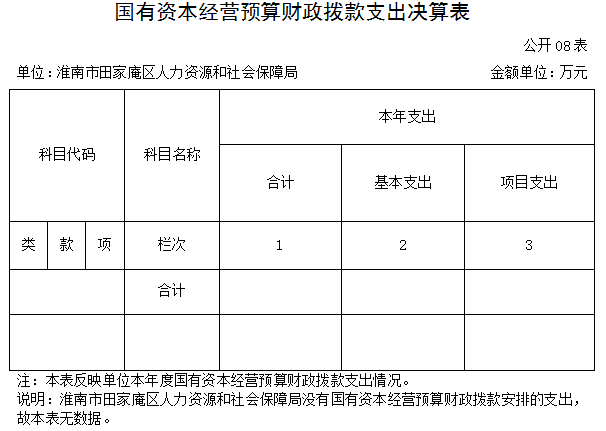 淮南市田家庵区人力资源和社会保障局没有使用国有资本经营预算财政拨款安排的支出。