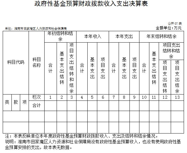 淮南市田家庵区人力资源和社会保障局没有政府性基金预算收入,也没有使用政府性基金预算安排的支出。