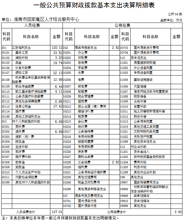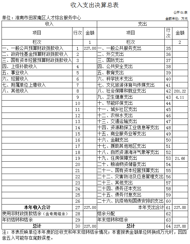 第二部分 淮南市田家庵区人才综合服务中心2024年度单位决算表