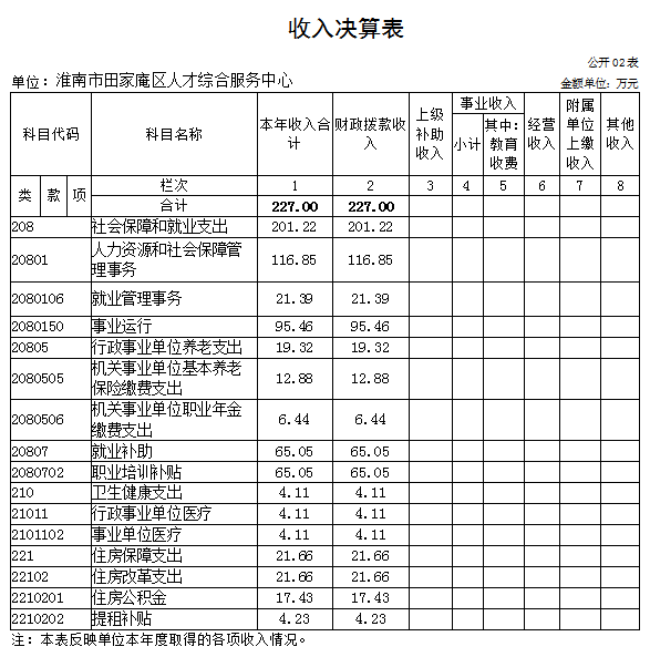 2024年度收入合计227万元,其中:财政拨款收入227万元,占100%;事业收入0万元,占0%;经营收入0万元,占0%;其他收入0万元,占0%。