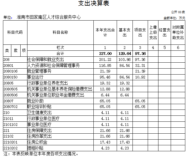2024年度支出合计227万元,其中:基本支出129.64万元,占57.11%;项目支出97.36万元,占42.89%。