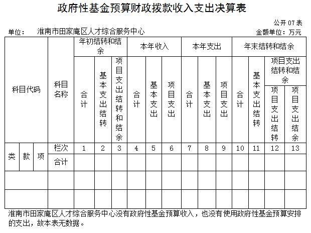 淮南市田家庵区人才综合服务中心没有政府性基金预算收入,也没有使用政府性基金预算安排的支出。