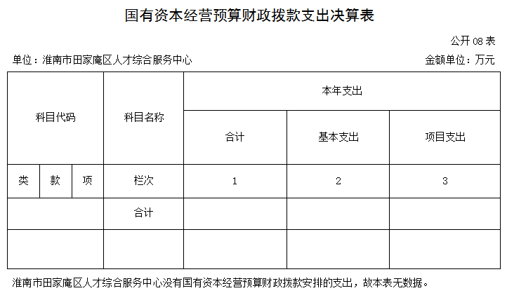 淮南市田家庵区人才综合服务中心没有使用国有资本经营预算财政拨款安排的支出。