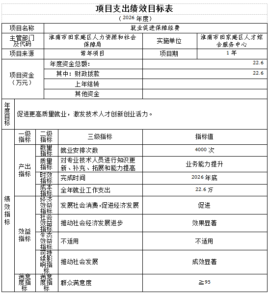 淮南市田家庵区人才综合服务中心2026年度项目支出绩效目标.doc