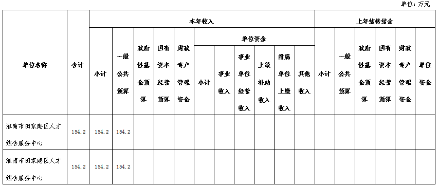 淮南市田家庵区人才综合服务中心2026年收入总表