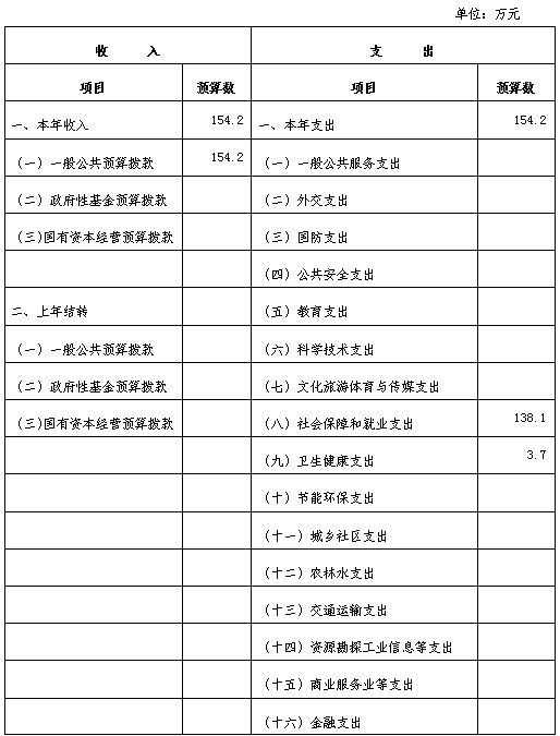 (一)本年收入154.2万元,主要包括:一般公共预算拨款收入154.2万元,占100%,比2025年预算减少3.7万元,下降2.4%,下降原因主要是在职人员转退休,导致本年在职减少1人。