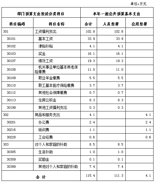 (一)人员经费111.3万元,主要包括:基本工资、津贴补贴、奖金、绩效工资、机关事业单位基本养老保险费、职业年金缴费、职工基本医疗保险缴费、其他社会保障缴费、住房公积金、其他工资福利支出、生活补助、奖励金、其他对个人和家庭的补助。