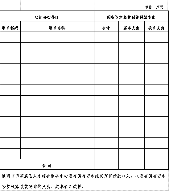 淮南市田家庵区人才综合服务中心2026年国有资本经营预算支出表