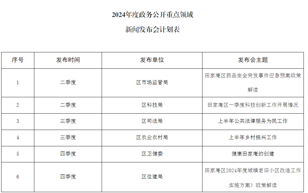 附件:2024年度政务公开重点领域新闻发布会计划表