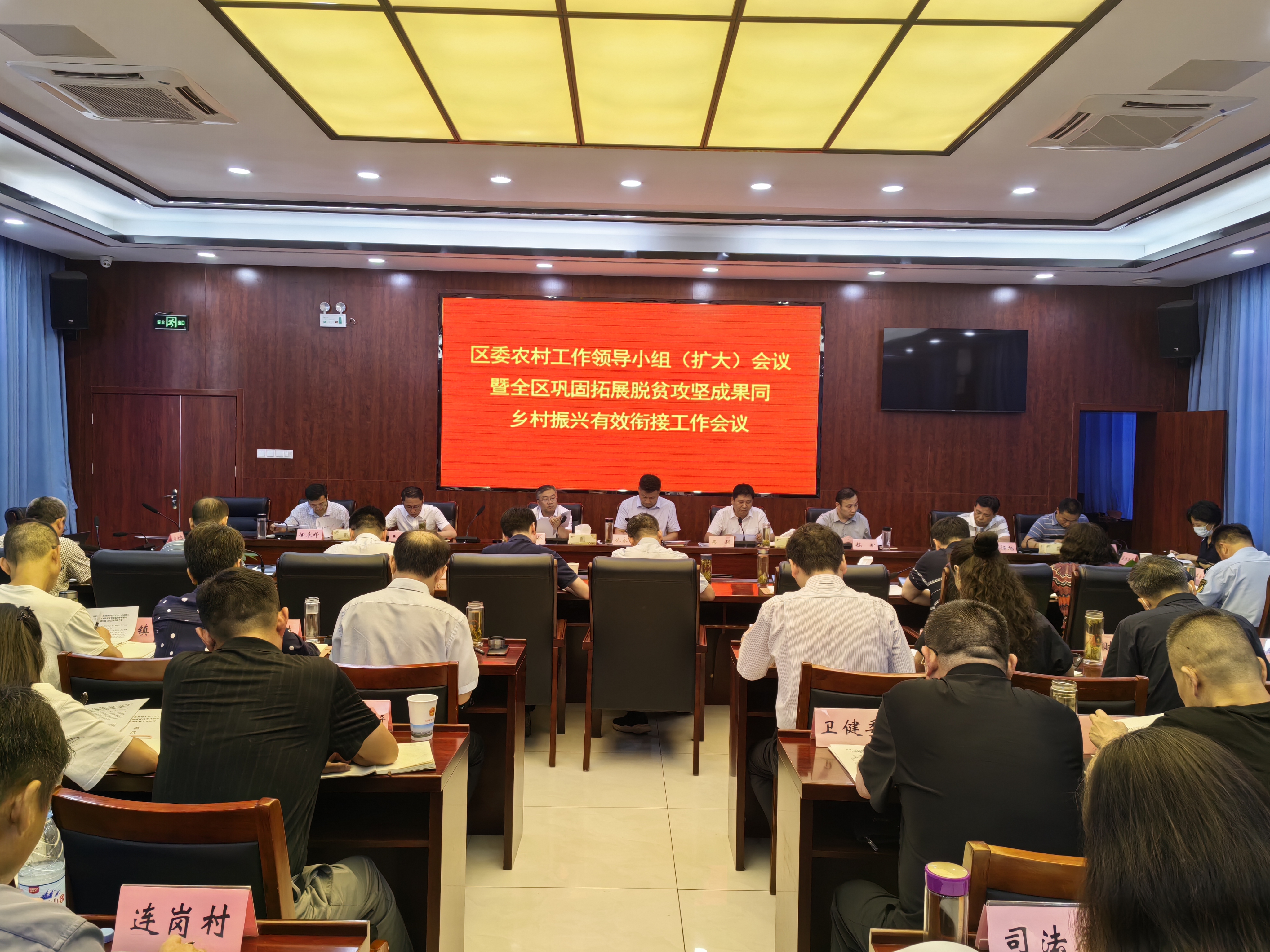 8月21日下午,区委书记从永刚、区长荣耀在区机关第九会议室召开区委农村工作领导小组(扩大)会议暨全区巩固拓展脱贫攻坚成果同乡村振兴有效衔接工作会议。会议传达学习了习近平总书记“三农”工作重要讲话及省市有关会议精神,通报了有关工作评价情况,部分单位进行了发言,对下步工作进行了安排部署。强调要切实增强使命担当,全面落实落细各项任务,奋力推动乡村全面振兴和“三农”工作迈上新台阶。区领导魏新、王庆祝、吴怀旭、徐永锋、苏传宝,区委农村工作领导小组成员单位负责同志,各乡镇党委主要领导、分管领导,各村党组织书记参加会议。