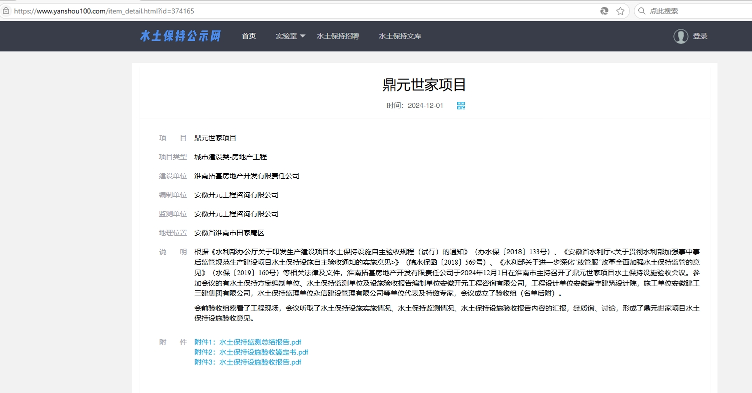 公示网站:水土保持公示网 公示网址:https://www.yanshou100.com/item_detail.html?id=374165 公示期:2024.12.1至2024.12.27 |