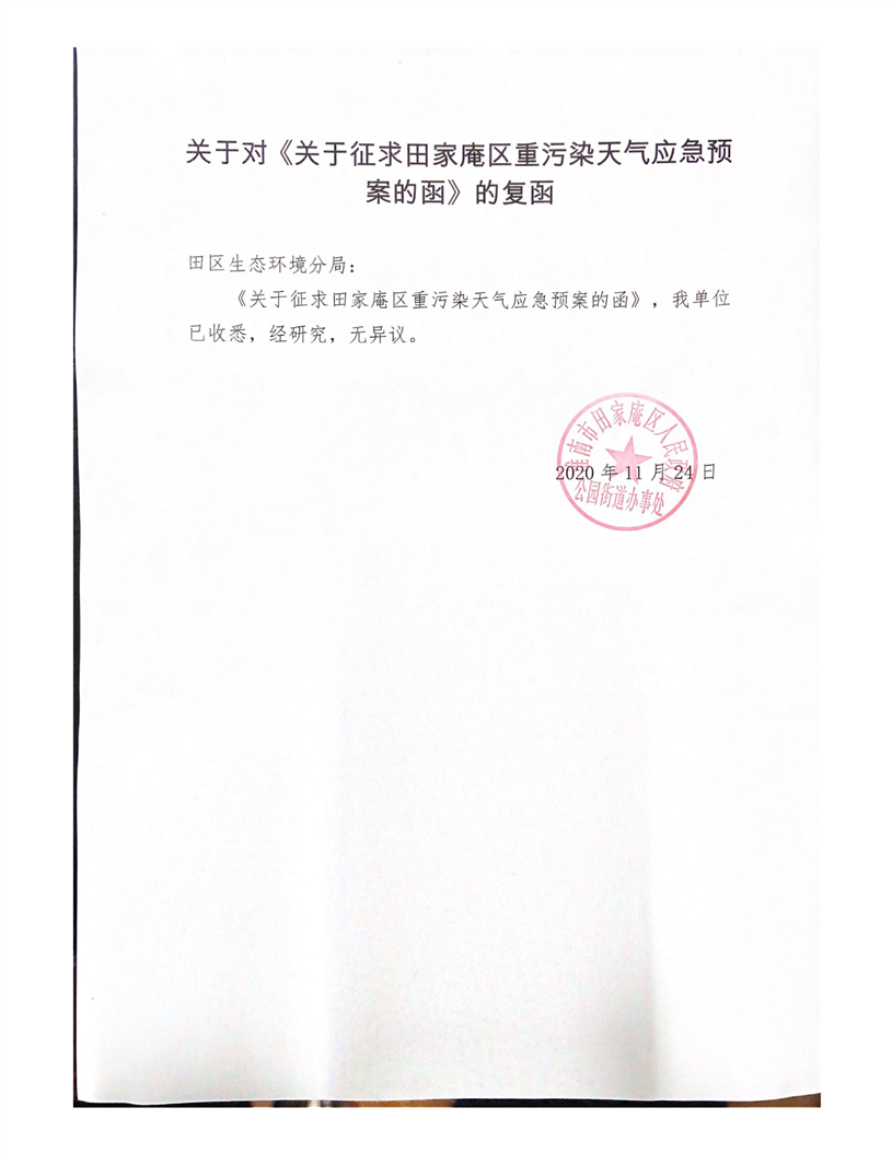 关于对《关于征求田家庵区重污染田区应急预案的函》的复函