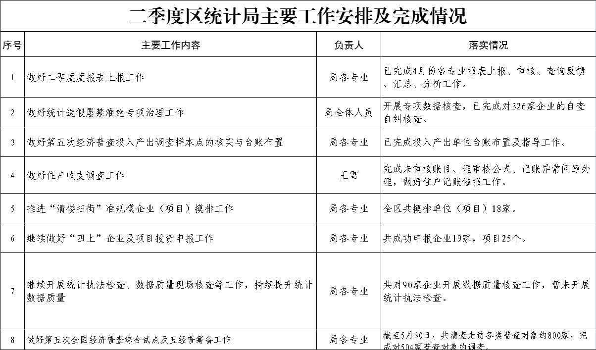 二季度区统计局主要工作安排及完成情况