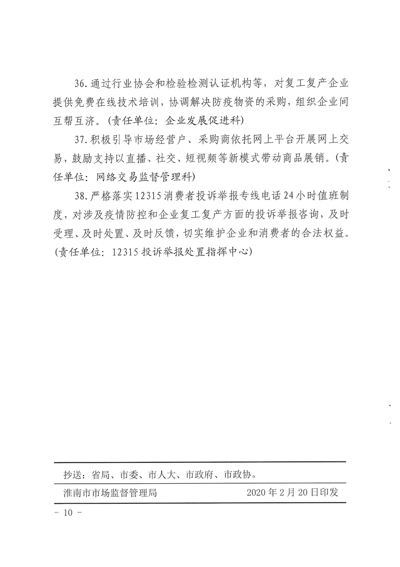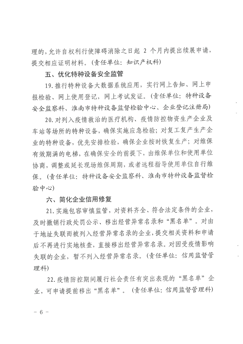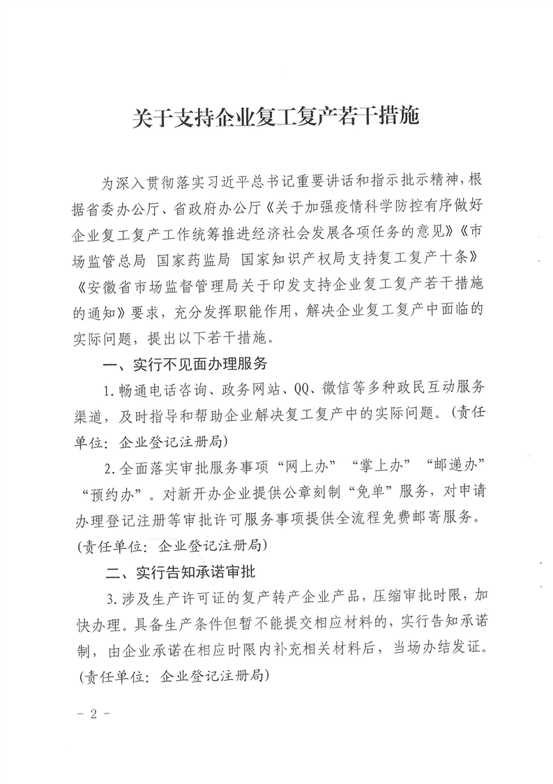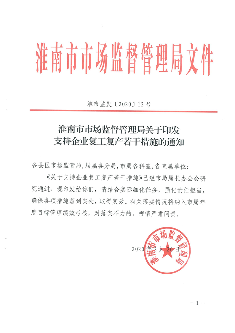 淮南市市场监督管理局关于印发支持企业复工复产若干措施的通知