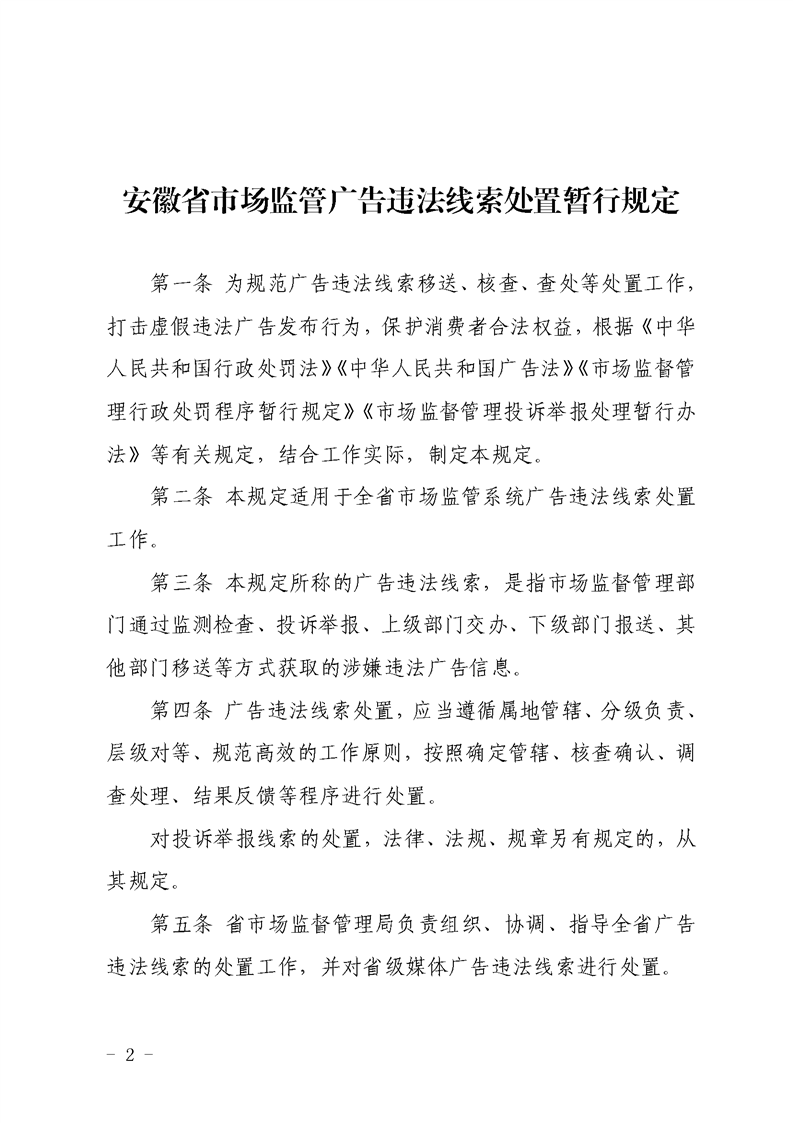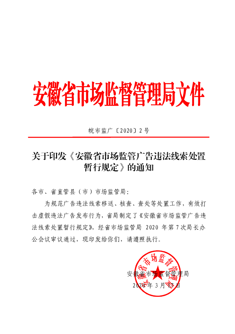 【转载】关于印发《安徽省市场监管广告违法线索处置暂行规定》的通知