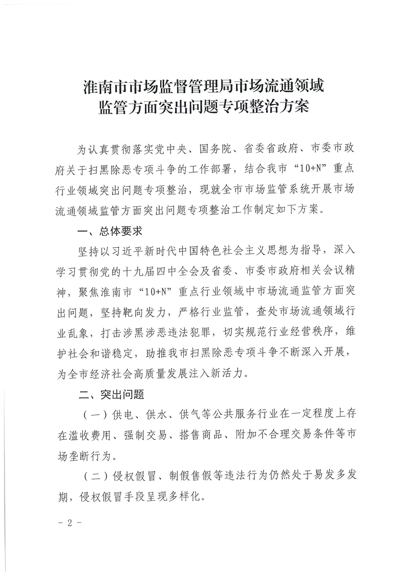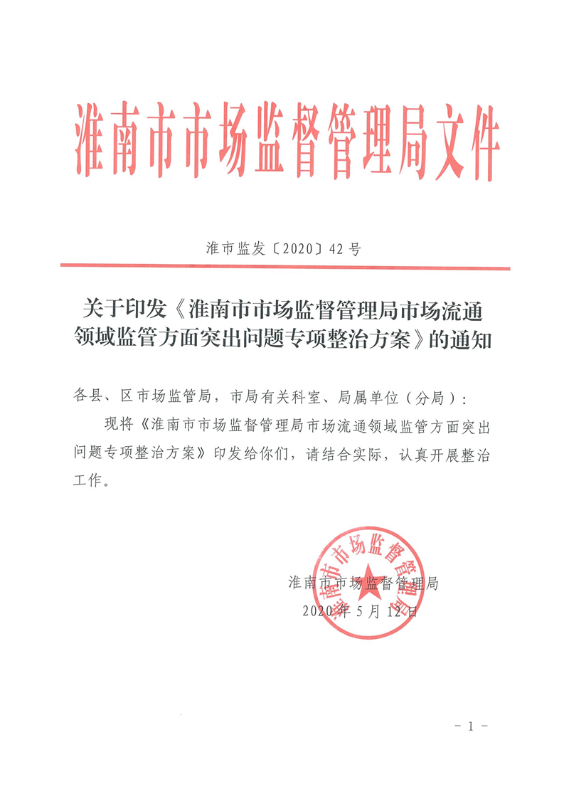 关于印发《淮南市市场监督管理局市场流通领域监管方面突出问题专项整治方案》的通知