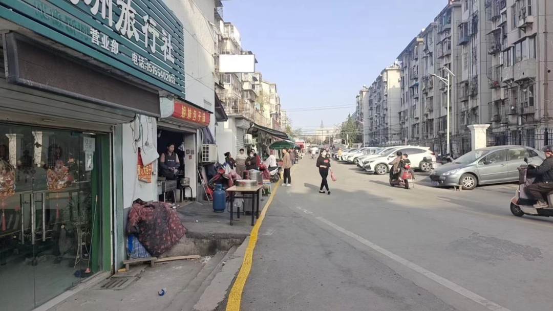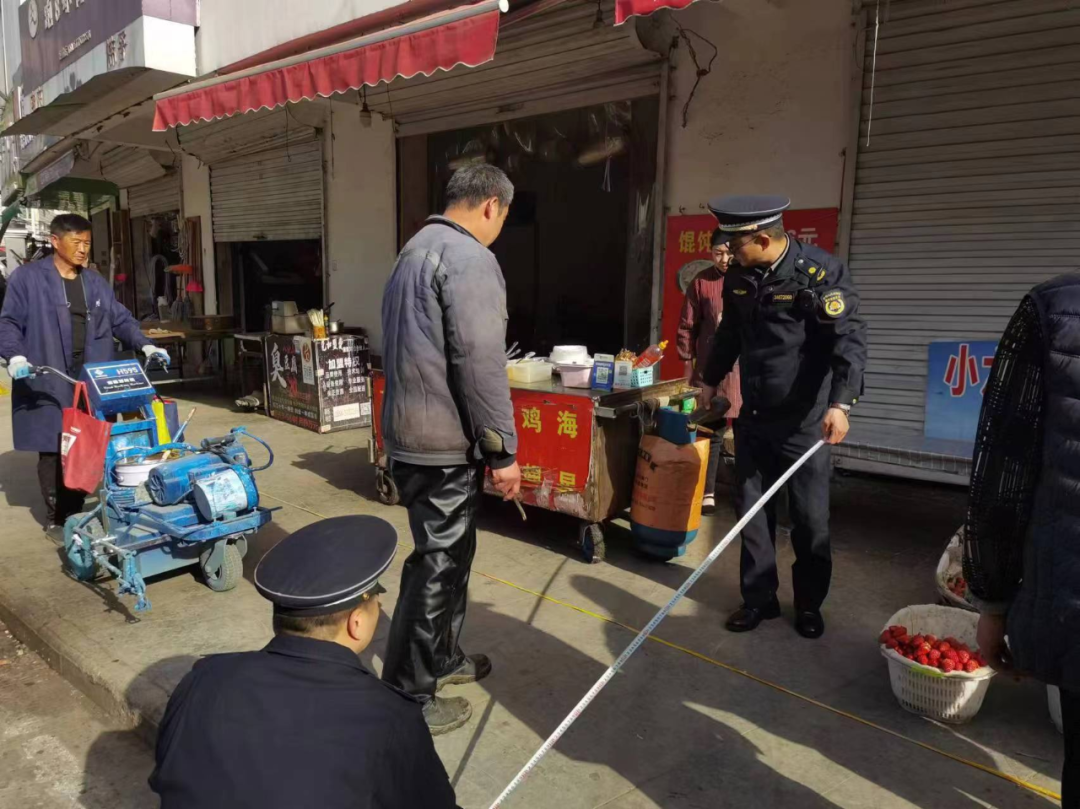 朝阳社区广场巷段的商户以售卖杂货、水果、蔬菜为主。店外乱堆乱放、占道经营一直是城市管理的难题。朝阳中队在深入了解沿街商户的实际情况和经营需求后,制定了统一施划“一米线”的实施方案,允许商户在店外 “一米线”内合理整齐地摆放临时货物。这条黄线不仅可以满足沿街商户的经营需求,也进一步改进城市面貌,增添城市烟火气。