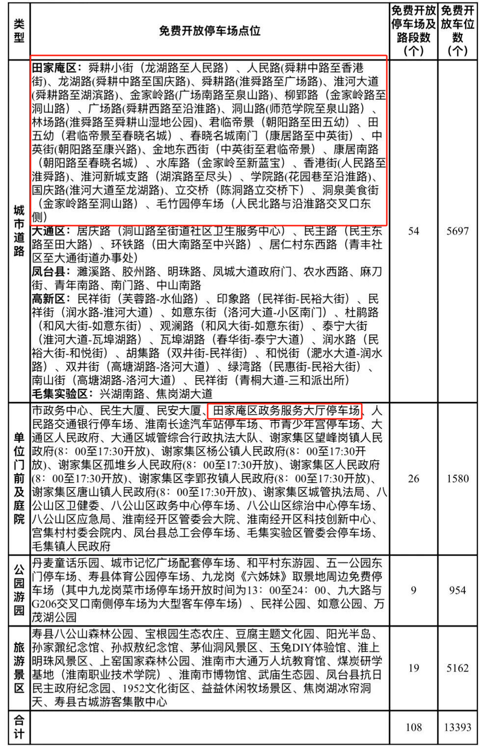 问:此次免费开放涉及田家庵区的停车位、停车泊位的具体有哪些?