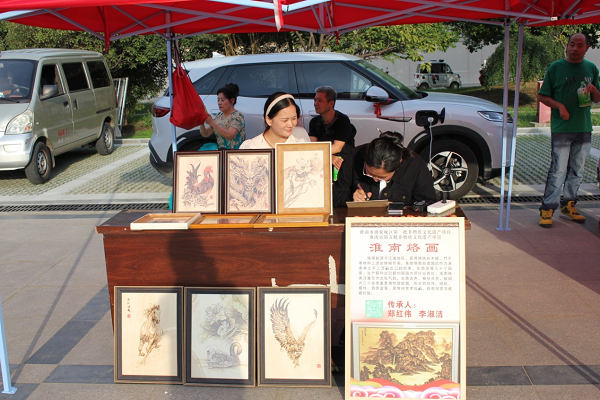 在活动现场,还有淮南烙画、匾额楹联雕刻、回汉皮艺、指纹画、淮南紫金石线刻、传统木雕、石栽、立体动物彩灯、剪纸、手工藤编技艺等非物质文化遗产以及连岗葡萄等特色农产品展示展销,让群众充分感受到了中华优秀传统文化的魅力和乡土韵味。