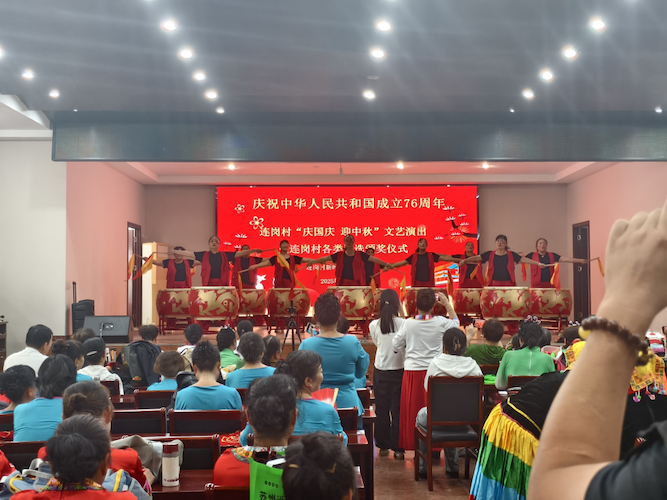 金秋送爽迎佳节,丹桂飘香庆团圆。2025年9月30日下午,连岗村大礼堂笑语盈盈、暖意融融,“庆国庆迎中秋”文艺演出暨各项评选活动颁奖仪式在此隆重启幕。大家欢聚一堂,以歌舞寄情,用精彩的表演表达对祖国的祝福和家乡的热爱。