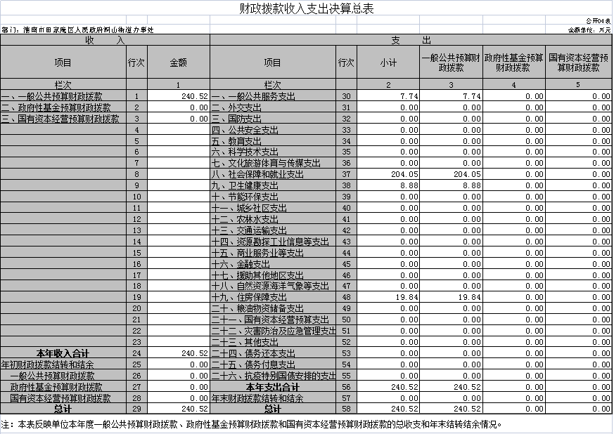 第二部分 淮南市田家庵区人民政府洞山街道办事处2022年度部门决算表